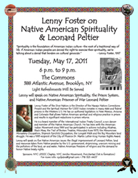 Lenny will speak on Native American Spirituality, the Prison System, and Native American Prisoner of War Leonard Peltier